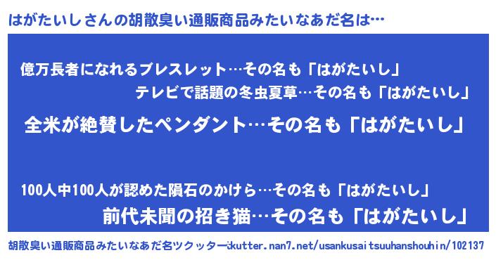 | 意味不明あだ名 | 『とにかく怪しいはがたいし』 |
