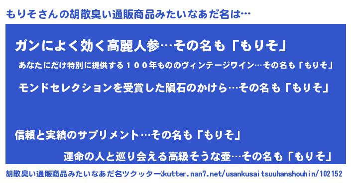 | ヒーロー風カッコイイあだ名 | 『慈愛の使者もりそ』『超時空戦士モリソ』 |