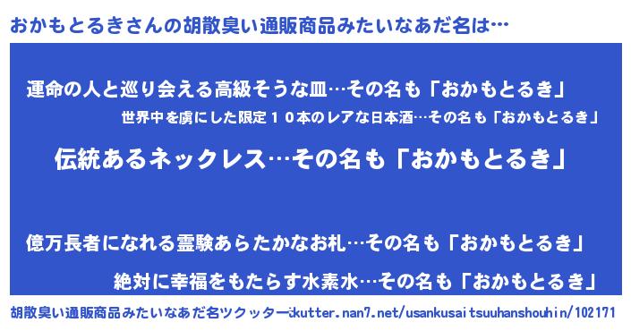 | 男性向けラノベタイトル風あだ名 | 『ダンジョンにおかもとるきを求めるのは間違っているだろうか』 |