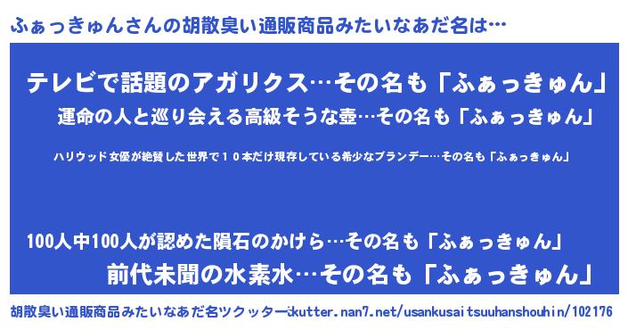 | 意味不明あだ名 | 『住所不定無職ふぁっきゅん(91歳)』 |