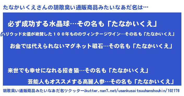 | ヘコむあだ名 | 『たなふぇ~』『たなかいくえ(爆)』 |