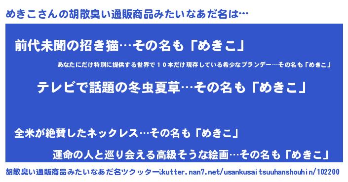 | ヘコむあだ名 | 『めきこ(震え声)』『酢こんぶ』 |