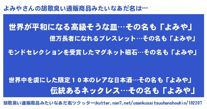 | 意味不明あだ名 | 『眠気覚ましガムよみや味』 |