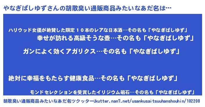 | 意味不明あだ名 | 『自称やなぎばしゆず』 |