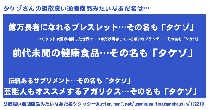 | ヘコむあだ名 | 『タケゾ(笑)』『タケっふぃ~』 |