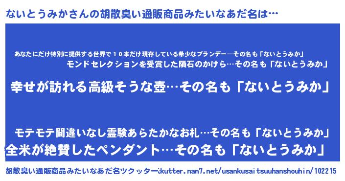 | 伝説のあだ名 | 『秘められし忍者ないとうみか』 |
