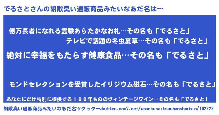 | 欧米人風あだ名 | 『アンジェラ・でるさと』 |