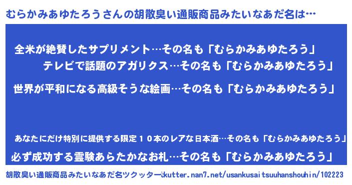 | 意味不明あだ名 | 『むらかみあゆたろうフォーエバー』 |