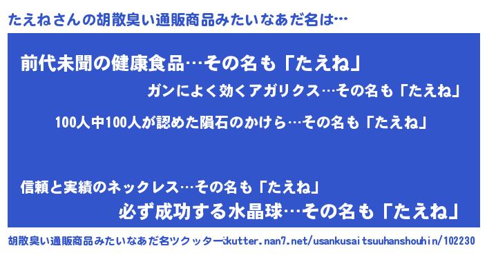 | 意味不明あだ名 | 『眠気覚ましガムたえね味』『自称たえね』 |