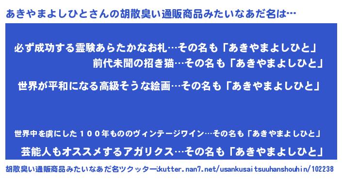 | 肩書あだ名 | 『あきやまよしひと総理大臣』 |