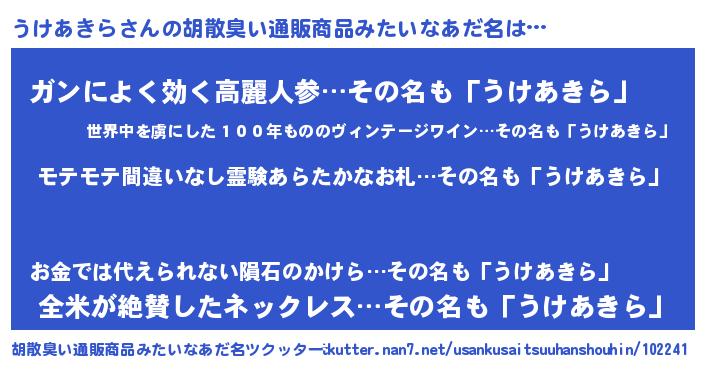 | 意味不明あだ名 | 『ペロリンうけあきら』『自称うけあきら』 |