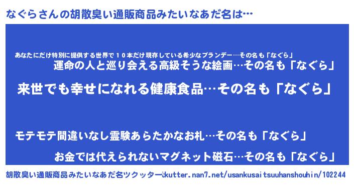 | 意味不明あだ名 | 『永久保存なぐら』『ニラ科なぐら属』 |