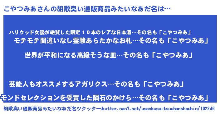 | 意味不明あだ名 | 『こやつみあフォーエバー』 |