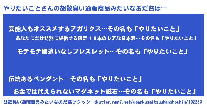 | ヒーロー風カッコイイあだ名 | 『スーパーヤリタイコト』『仮面ヤリダー』 |
