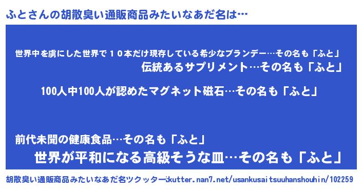 | 欧米人風あだ名 | 『ダニエルふと』『アンジェラ・ふと』 |