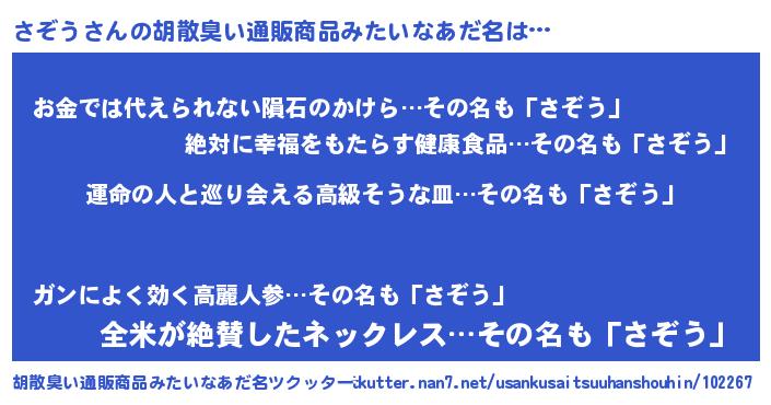 | 自動車の名前っぽいあだ名 | 『サールスゾイス』『サクア』『サンR』 |