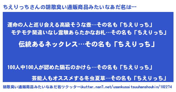 | 意味不明あだ名 | 『とにかく怪しいちえりっち』 |