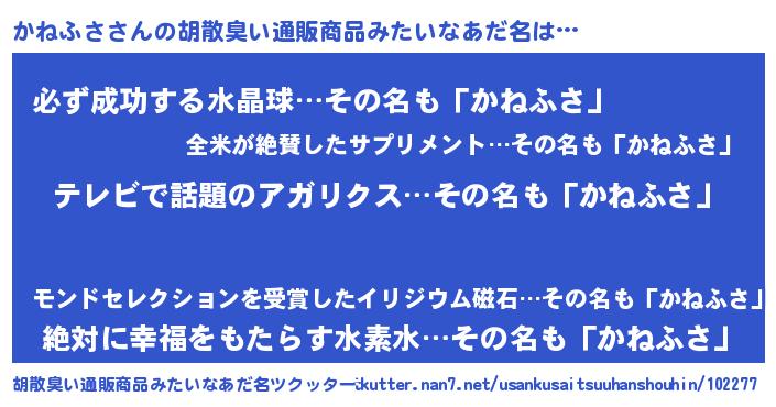 | ヘコむあだ名 | 『かねもー』『かねふさ(爆)』 |