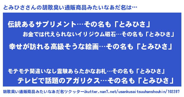 | 意味不明あだ名 | 『とみひさフォーエバー』『自称とみひさ』 |