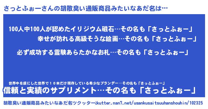 | 伝説のあだ名 | 『伝説のスナイパーさっとふぉー』 |