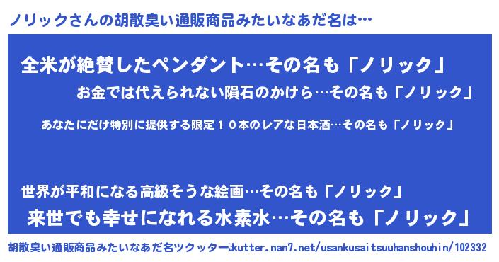 | 意味不明あだ名 | 『住所不定無職ノリック(14歳)』 |