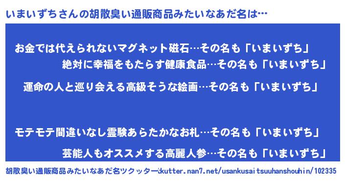 | ヘコむあだ名 | 『酢こんぶ』『いまいずち(笑)』 |