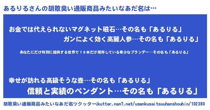| ヒーロー風カッコイイあだ名 | 『仮面アルダー』『慈愛の使者あるりる』 |