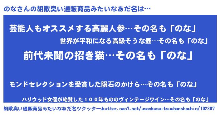 | ヘコむあだ名 | 『のな(小並感)』『つくし』『のなを』 |
