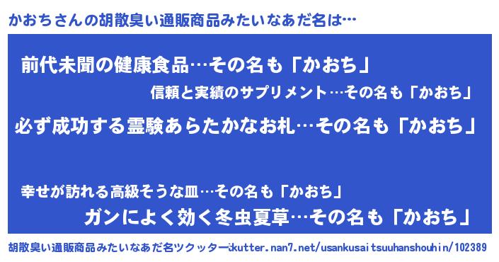 | 男性向けラノベタイトル風あだ名 | 『かおちの憂鬱』『はたらくかおちさま!』 |