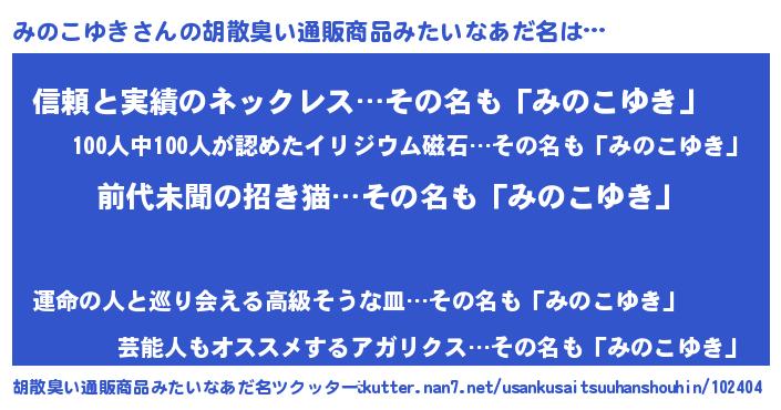 | ヘコむあだ名 | 『みのこゆき(小並感)』『みのを』 |