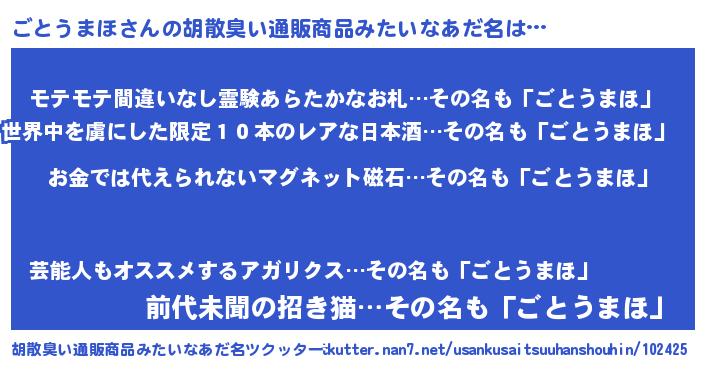 | ヘコむあだ名 | 『ごとふぇ~』『ごとうまほ(笑)』 |