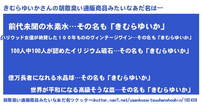 | ヘコむあだ名 | 『きむらゆいか(苦笑)』『酢こんぶ』 |