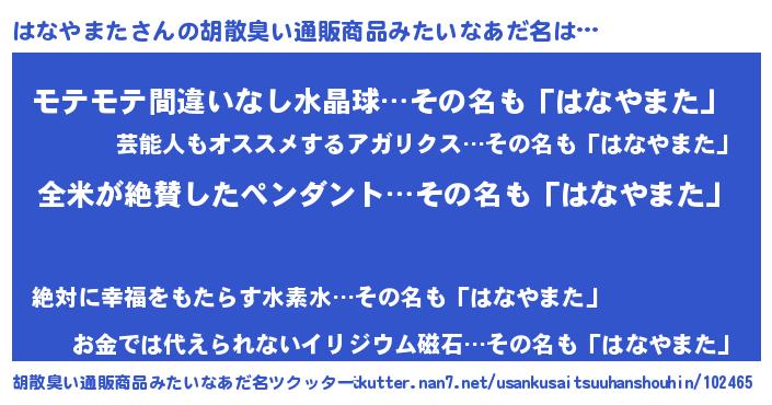 | 意味不明あだ名 | 『とにかく怪しいはなやまた』 |