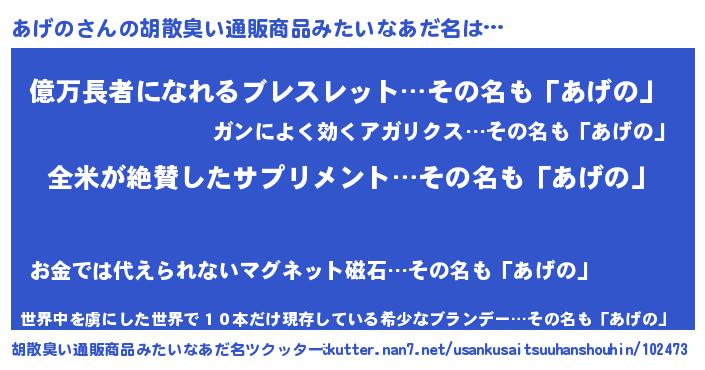 | ヘコむあだ名 | 『あげお』『あげにー』『レバニラ』 |