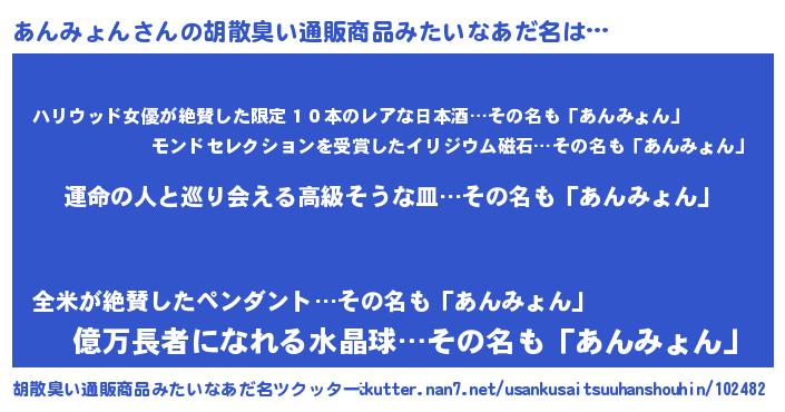 | 意味不明あだ名 | 『あんみょんフォーエバー』 |
