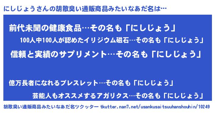 | 意味不明あだ名 | 『とにかく怪しいにしじょう』 |