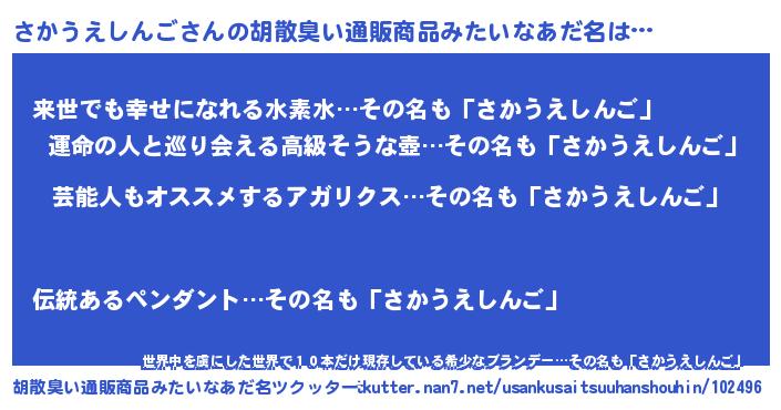 | 意味不明あだ名 | 『自称さかうえしんご』 |