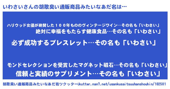 | 意味不明あだ名 | 『ペロリンいわさい』『永久保存いわさい』 |