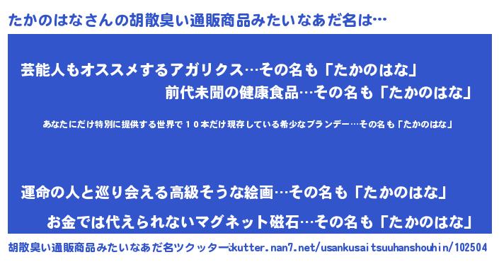 | 意味不明あだ名 | 『住所不定無職たかのはな(89歳)』 |