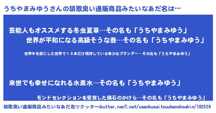 意味不明あだ名 | 『住所不定無職うちやまみゆう(98歳)』 |