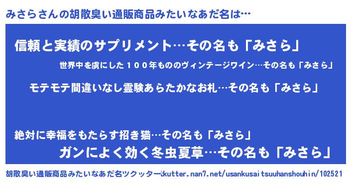 | ヘコむあだ名 | 『みさっふぃ~』『みさを』 |