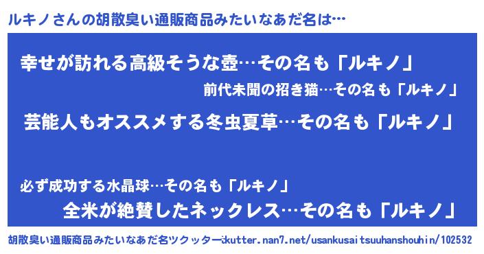 | 可愛いあだ名 | 『ルーみん』『ルキうちぇる』 |