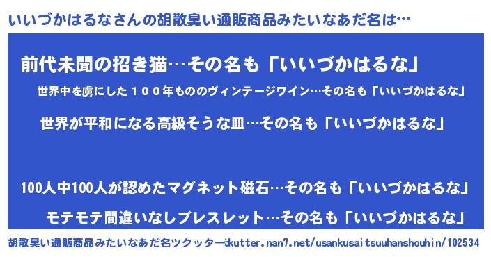 | 男性向けラノベタイトル風あだ名 | 『いいづかはるなに滅ぼされるだけの簡単なお仕事です』 |