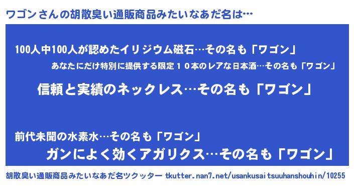 | ヒーロー風カッコイイあだ名 | 『暗黒騎士ワゴ』『慈愛の使者ワゴン』 |