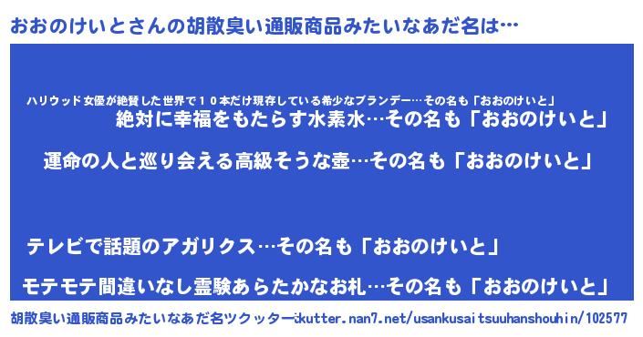 | 意味不明あだ名 | 『おおのけいとフォーエバー』 |