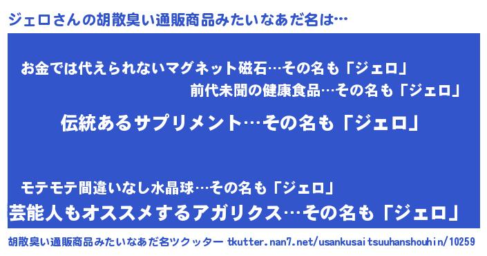 | ヘコむあだ名 | 『ジェを』『ジェロ(苦笑)』 |