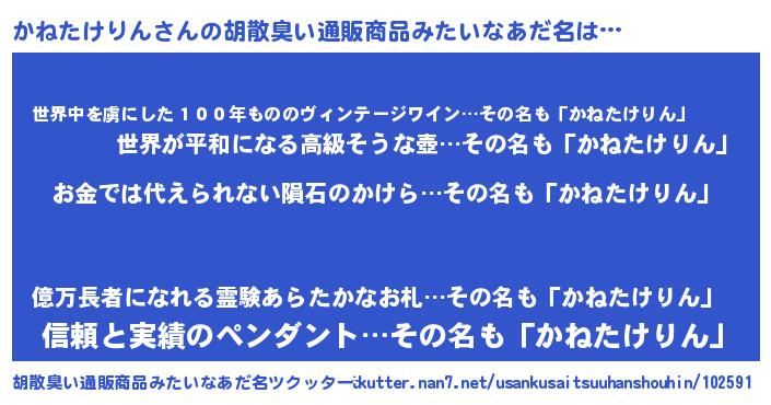 かねたけりんさんの胡散臭い通販商品みたいなあだ名をツクッター!