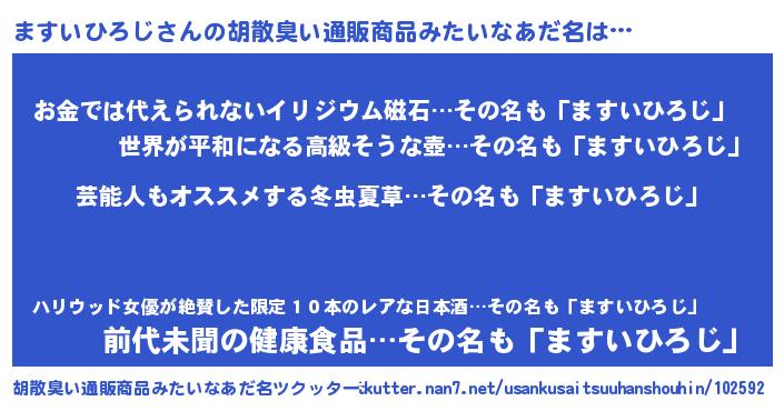 | 肩書あだ名 | 『ますいひろじ総統』『ますいひろじ助手』 |