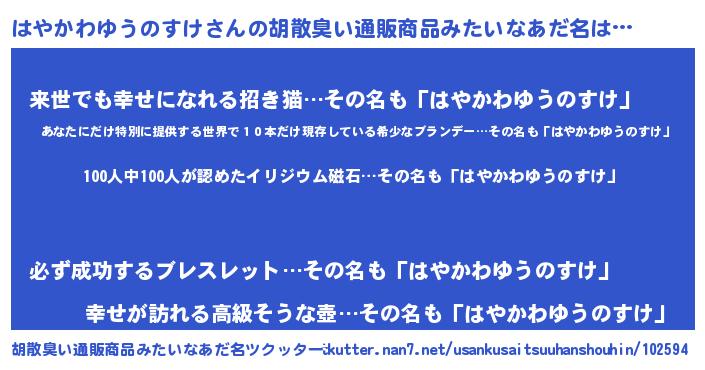 | ヘコむあだ名 | 『はやかわゆうのすけ(爆)』『なまこ酢』 |