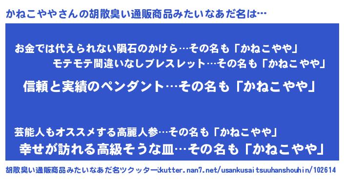 | 男性向けラノベタイトル風あだ名 | 『ダンジョンにかねこややを求めるのは間違っているだろうか』 |
